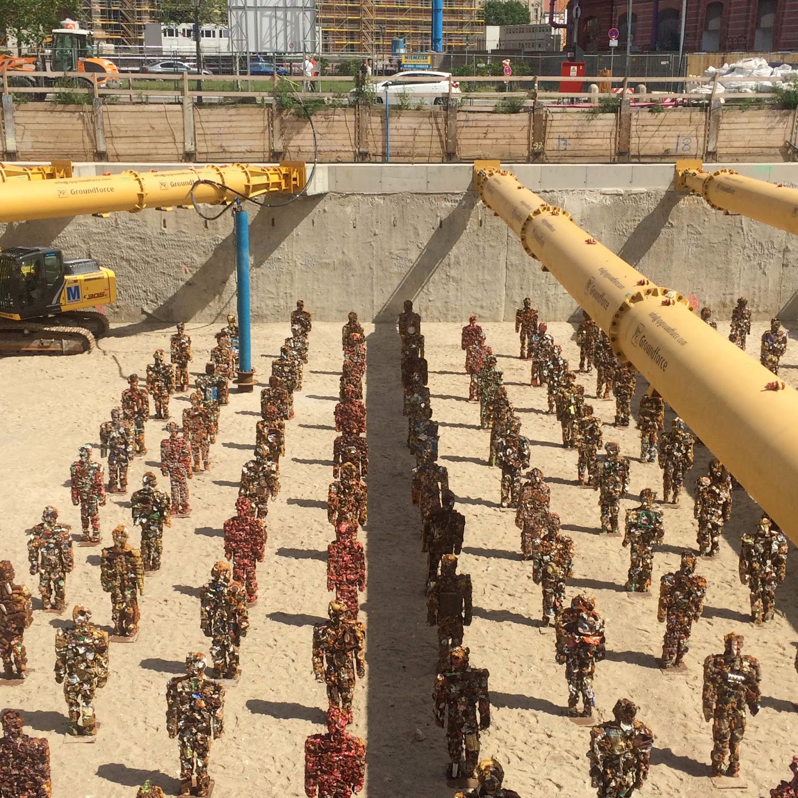 Seit 1996 reist die „Müll-Armee“ des Aktionskünstlers HA Schult durch die Welt. Eine „vorweggenommene Archäologie“ nennt Schult die Installation, die an die Terrakotta-Armee in China erinnern soll. Die mannshohen Großskulpturen (rund 1,80 Meter), zusammengebaut aus Blechdosen und anderem Zivilisationsmüll, standen bereits auf dem Roten Platz in Moskau, an der Chinesischen Mauer und den Pyramiden von Gizeh. Sie sollen die Ausgegrenzten und Ausgebeuteten dieser Welt symbolisieren und mahnen zu Umweltschutz und nachhaltigem Umgang mit der Natur.