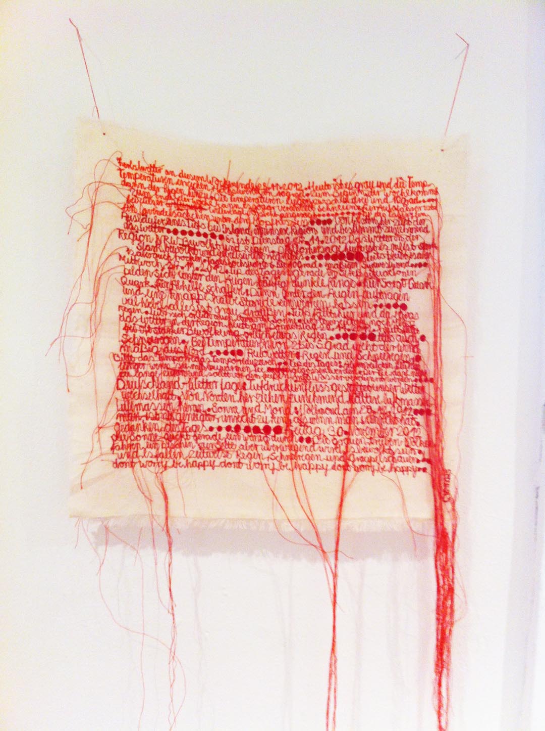 | Der Wetterbericht von Berlin von ca. drei Monaten wurde hier Wort für Wort aufgestickt. |