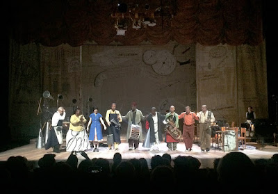 Eröffnet wurde die Aufführungsreihe mit den Ciné-Concert „Paper Music“ von William Kentridge im Martin-Gropius-Bau. Es ist das jüngste Ergebnis der langjährigen Zusammenarbeit zwischen William Kentridge und dem südafrikanischen Komponisten Philip Miller. Wunderbar und überzeugend, ja berauschend war der subversiver Lied-Zyklus: die Videoanimationen aus Kohle- oder Tuschezeichnungen untermalt von der Live-Performance der Sängerinnen Ann Masina und Joanna Dudley sowie des Pianisten Vincenzo Pasquariello.
