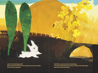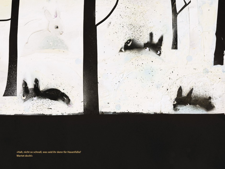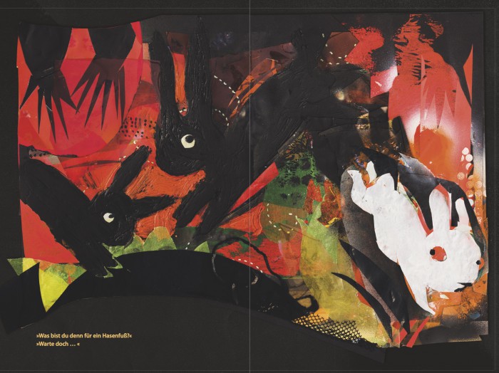 Malerische Collagen, schimmernde Farbschichten und ein leuchtendes Finish: Das Kinderbuch »Milli Hasenfuß« ist ein ganz besonderes.