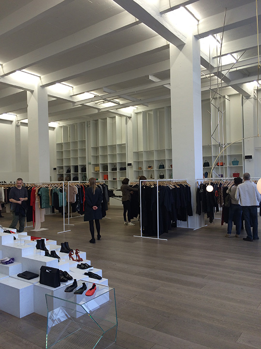 Andreas Murkudis Concept Store (Potsdamer Straße 81e) auf der Potsdamer Straße gehört weltweit zu den bekanntesten Läden Deutschlands. Auf einer Fläche von 1.000 qm hat der gebürtige Grieche, dessen Bruder Kostas selber Modedesigner ist, ein Imperium des guten Geschmacks geschaffen. Von Designer-Kleidung (oh ja es gabe einige Teile von Dries van Noten!), über hochwertige Einrichtungsgegenstände bis hin zu Lederwaren und Beauty-Produkten gibt es hier alles, was Luxus-Herzen höher schlagen lässt. Im Rahmen des Gallery Weekends hatte der Store mit einer vielversprechenden Mischung aus Lichtinstallationen, limitierten Designklassikern und Schmuckarrangements und beweist, dass auch Mode kunsttauglich ist.