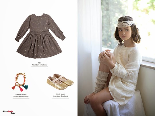 left side dress (Talc), bracelet (Louise Misha), ballerina (Petit Nord), girl’s dress (Zara)