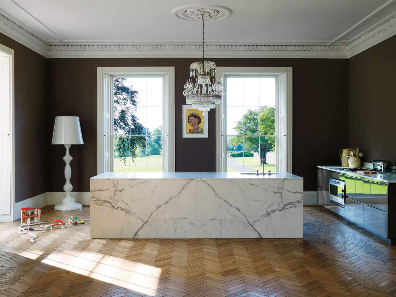 in 2004 it was bought by Chris and Jo Mycock, the owners of a successful I.T. company. Four years (and five architects) later, they finally moved in, once the soul of the building had been restored — as a family house, for a modern family — by the London designer Ilse Crawford. Very impressiv, see for yourself …